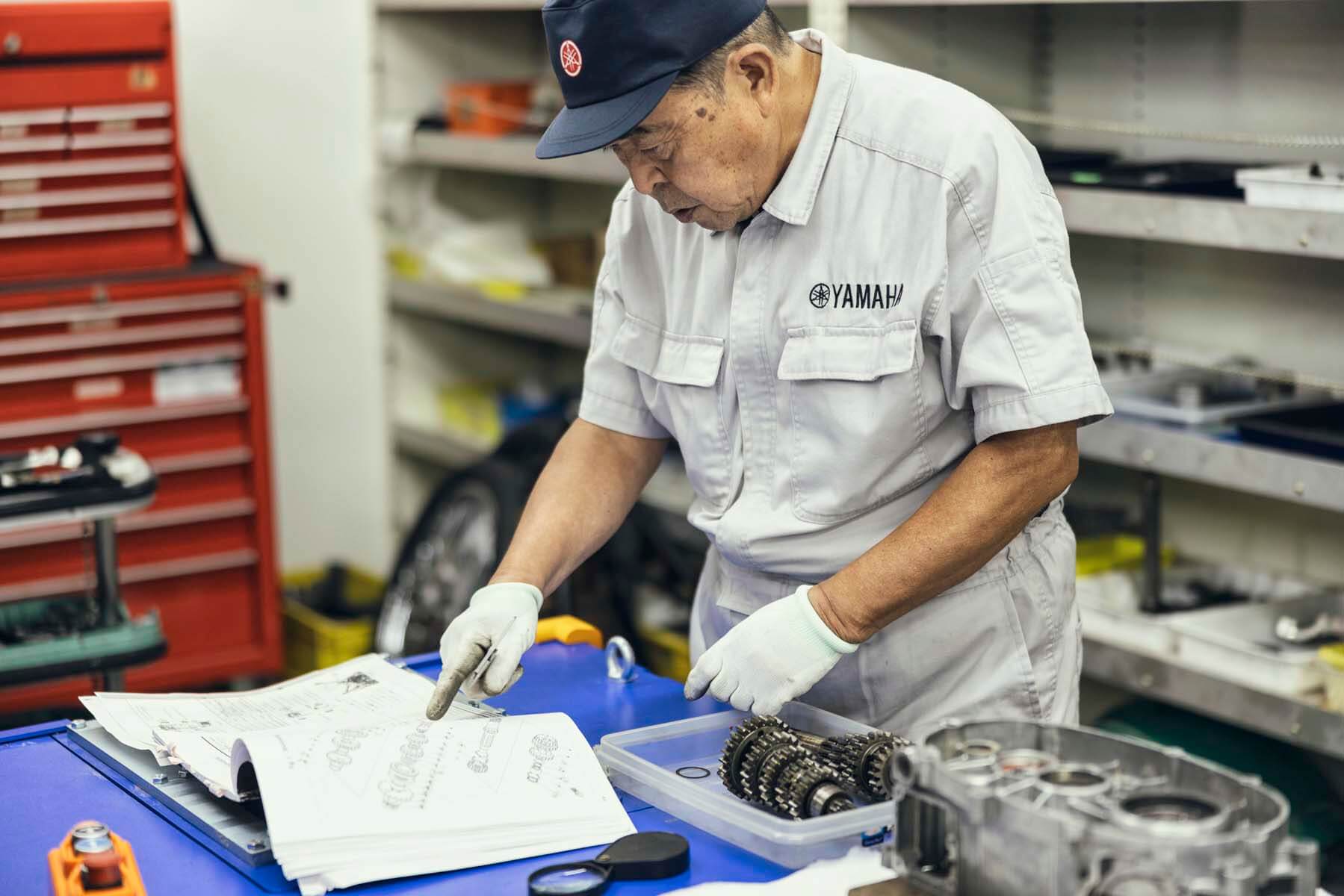 The DS6-C was slowly disassembled with Hanai-san carefully examining and cataloguing each part as it was removed. “Even when I first saw the bike, I could tell that it was in very good condition and still capable of giving its owner a fun time in the saddle,” Hanai-san revealed while working on the machine. “But for Yamaha Motor to preserve it as one of its historical assets, the small amounts of rust would need to be removed, and the peeling paint restored.” As he removed each part, Hanai-san discovered evidence of decades of loving maintenance and regular riding, both done with skill and care. “I’ve been doing this job for a long time, and I can usually tell just by looking at a bike how the owner rode and maintained it. For example, a booster has been fitted to the lights’ electrical system, which tells me the owner often went for long-distance rides that went into the night. And because the tyres are evenly worn, I can tell the rider enjoyed a lot of cornering through mountain roads away from the city; this piqued my interest about who the owner was.”