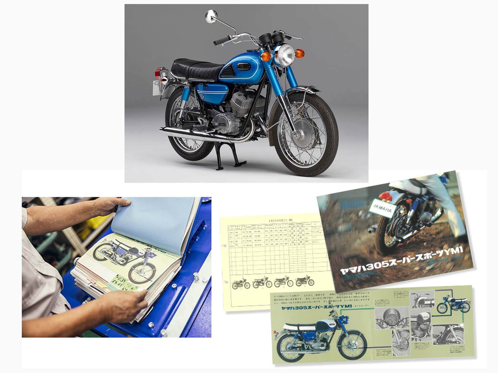 As the restoration neared completion, Hanai-san solved the mystery of the rubber knee pads with a chance discovery. A guidebook from the 1969 Tokyo Motor Show was discovered, and it featured a DS6-C without rubber knee grips. “It’s not clear whether it was an export model or a later model,” Hanai-san explained, “but it is proof that having no knee grip rubber pads on the tank was an original specification by Yamaha.” The decision was made to keep the tank that was fitted to the bike when it first arrived at the Communication Plaza. “We had prepared another tank with rubber knee grips, so if we had not made this discovery, we would have fitted that one. The guidebook was an excellent find and a good example that there is always something new to learn.”