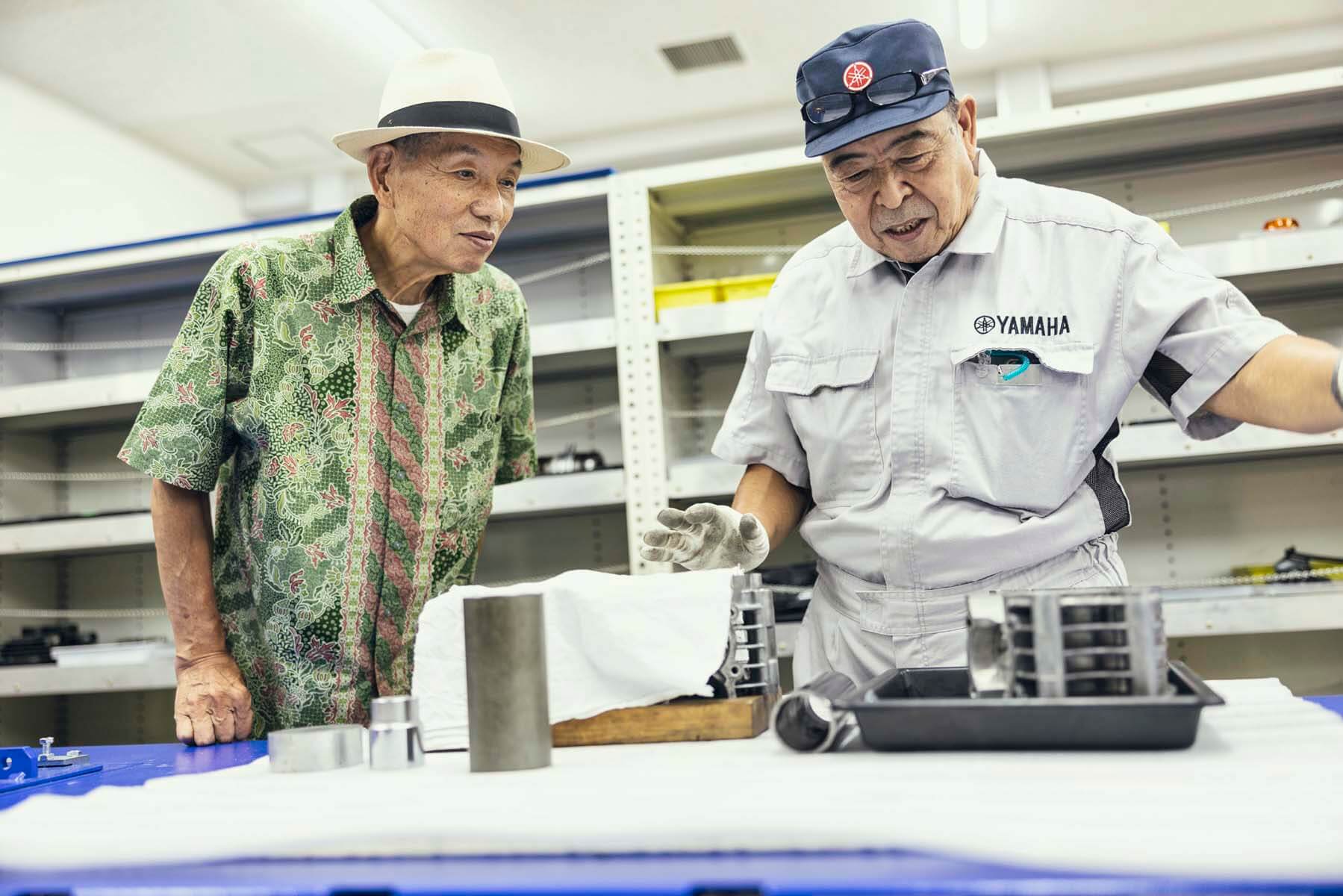 While Hanai-san and Saito-san had never met prior to the restoration of Saito-san’s DS6-C, when the pair met at the Communication Plaza to look over the beautifully restored bike that was on display for the first time, Hanai-san felt like he was meeting an old friend. It was obvious right away that the two men shared a similar passion for Yamaha motorcycles. Like his Yamaha counterpart, Saito-san was meticulous with his record-keeping throughout the ownership of the bike. In addition to being a fellow engineer, he was also able to share a detailed history of the bike and confirmed all Hanai-san’s assumptions based on his detective work.
