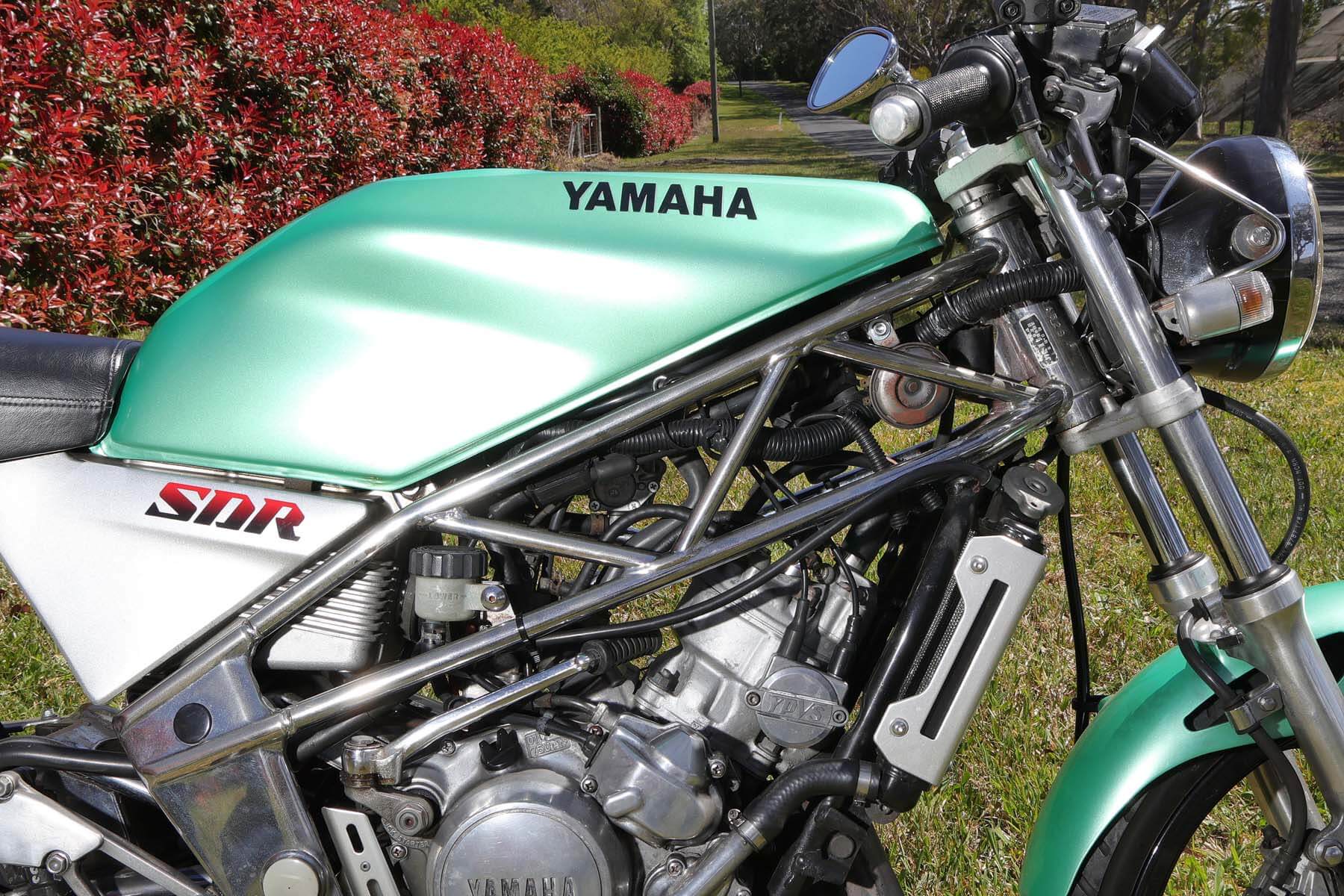 Visually, the SDR 200 is as distinctive as it is rare. Its centrepiece is a chrome-plated molybdenum steel trellis frame that looks like something out of Bologna rather than Iwata. In fact, it predates Ducati’s Monster by six years. “The trellis frame is something unusual for a Yamaha,” Pete notes. “The fact that the design predates the Ducati Monster by six years makes it even cooler in my books. The chrome finish really makes the bike stand out.”