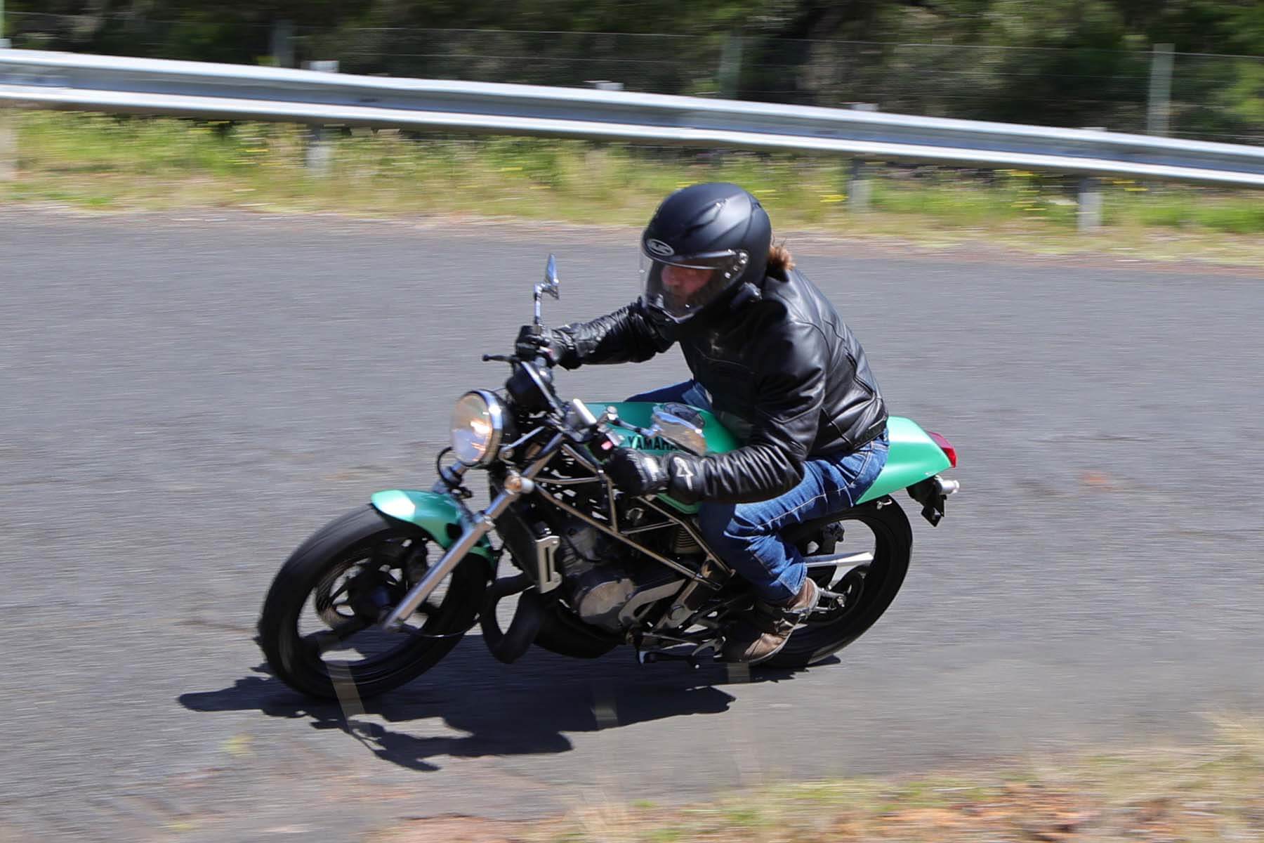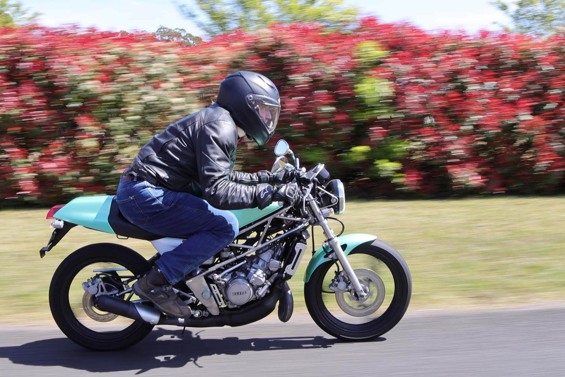 On the road, the SDR feels and handles as light as it looks. Pete rides it on local roads near home and occasionally through the twists of Sydney’s Royal National Park, where its agility comes alive. “It corners tight, feels incredibly light, and lets you really get low, especially on roads like the Royal National Park,” he says. Yamaha claimed a top speed of 100 mph, and while