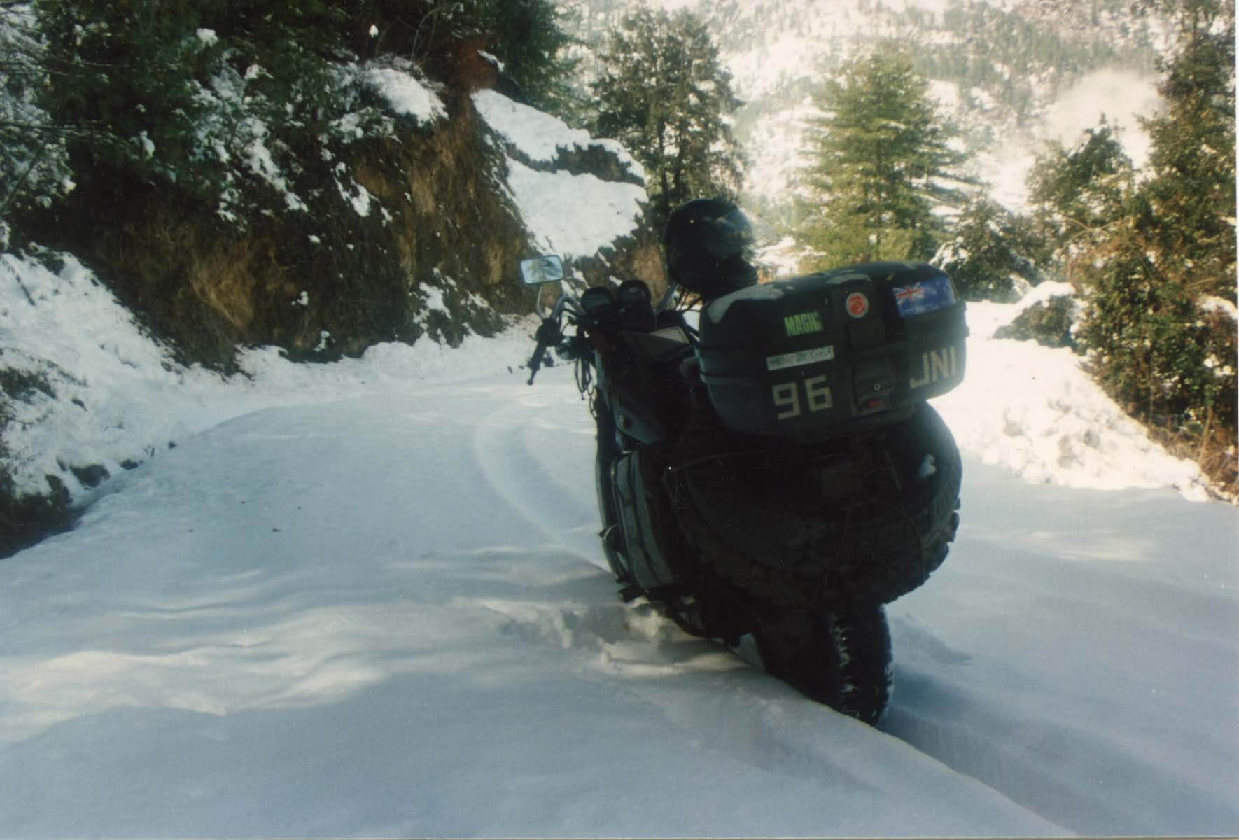 He then looped back through India, Pakistan, and Iran—despite there being no road between the countries at the time. He even braved an Eastern European winter where temperatures plummeted to -24 degrees Celsius. "The snow on the back of the bike didn’t melt for three months," he says. "The bike was outside 24/7 and never seized up."