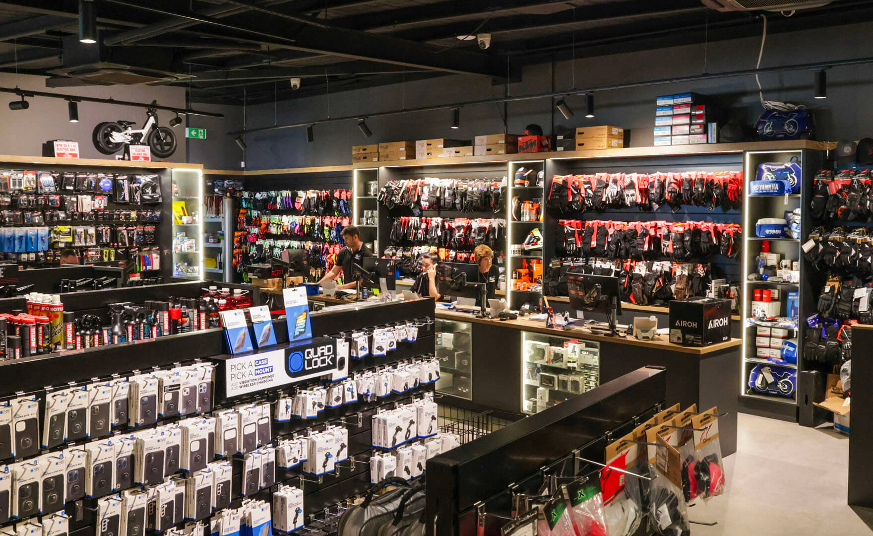 Parts, accessories and apparel are a major focus of the business. “The parts and accessories area is vital,” Strett says. “It’s something that I pay close attention to. With the renovation we were able to display everything a lot better, and provide a bigger range. It’s also where much of the team is based.”