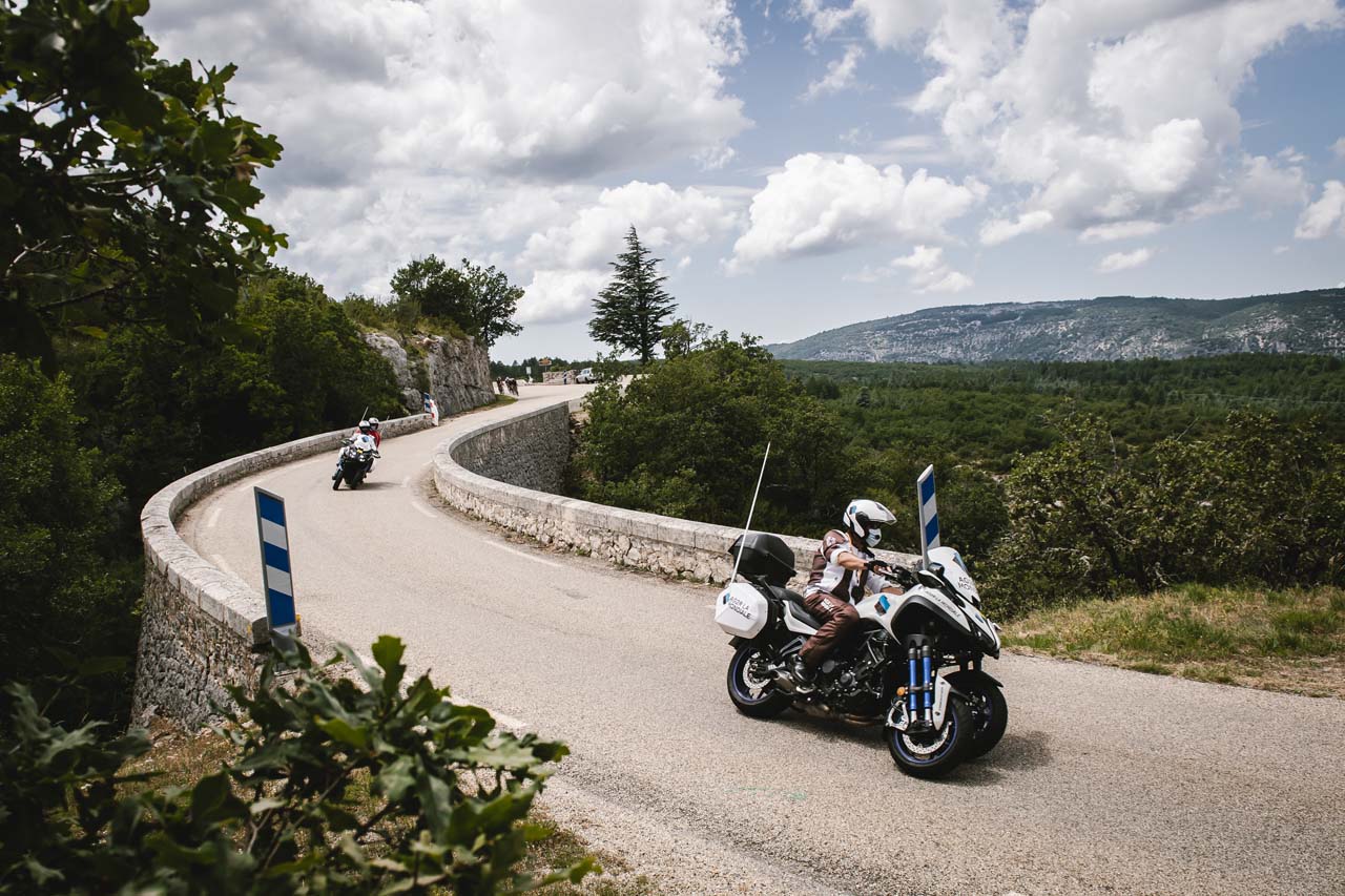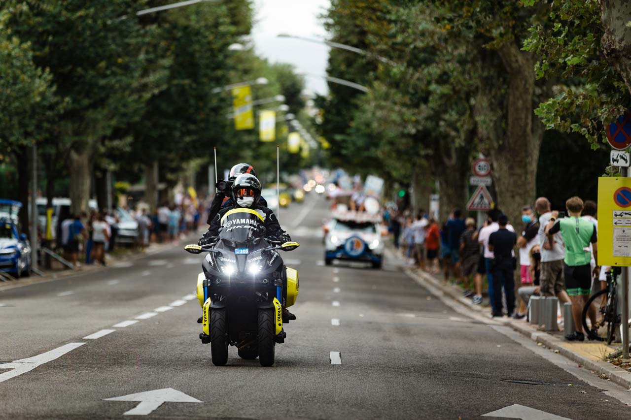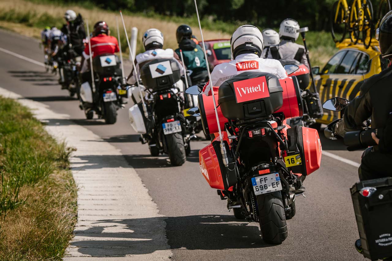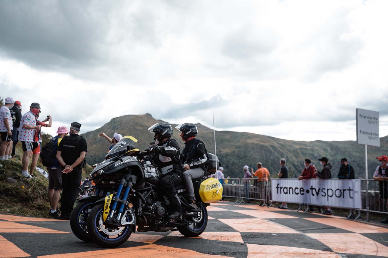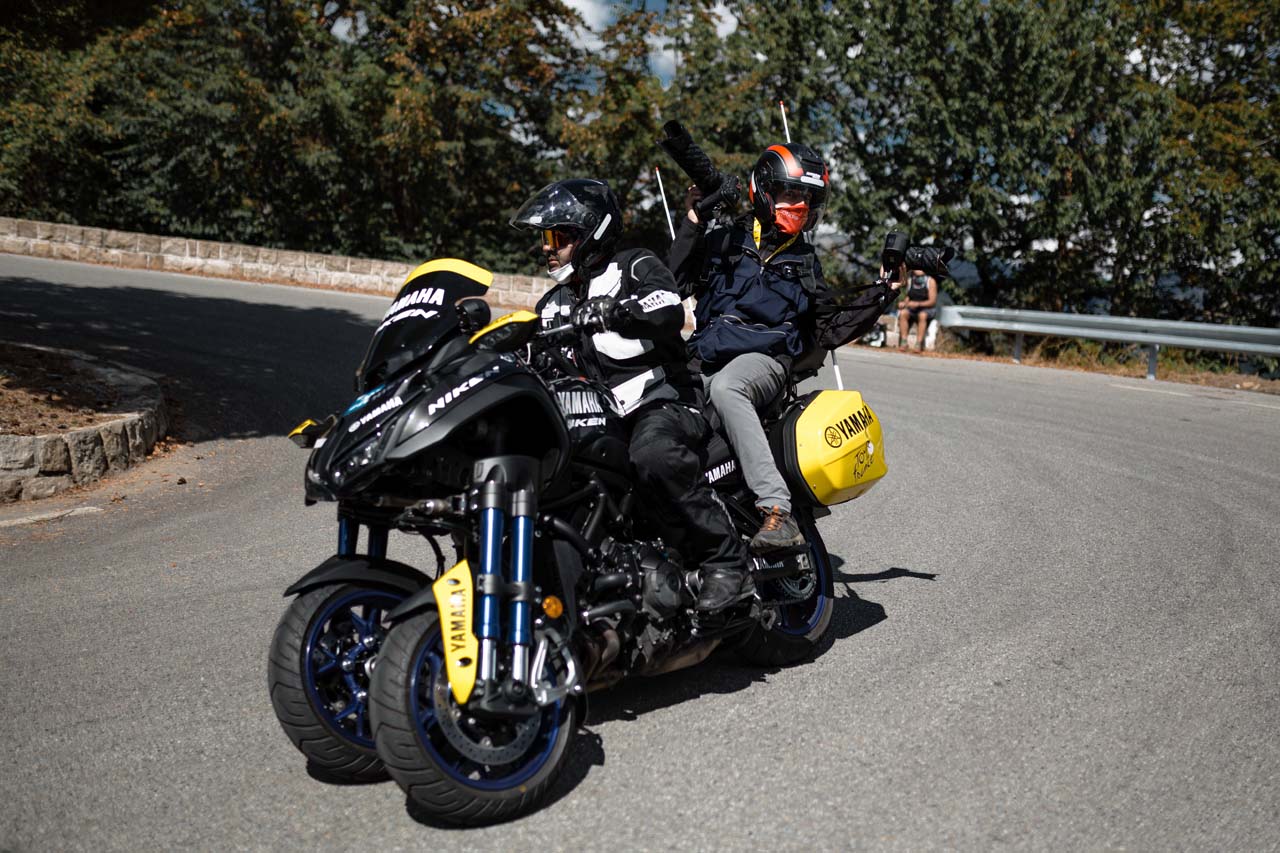 The goal of the Yamaha-mounted riders is to get as close to the action as possible without impacting the race - it does not always go to plan. Medical assistance, communication, mechanics, and race coordination are all motorcycle-mounted, jockeying for the best position as the peloton roars along at 50-70km/h.