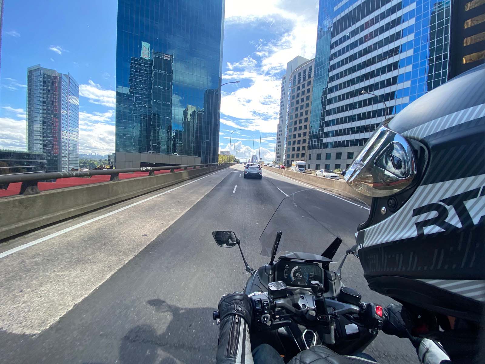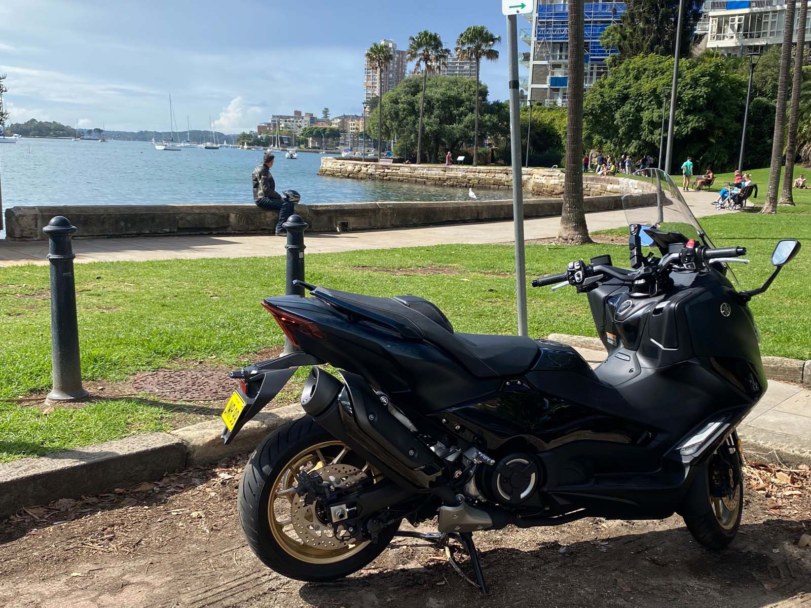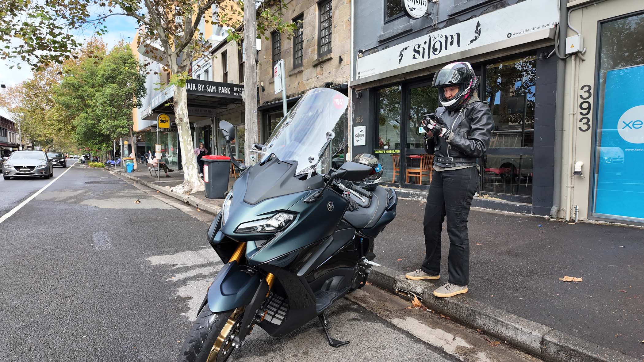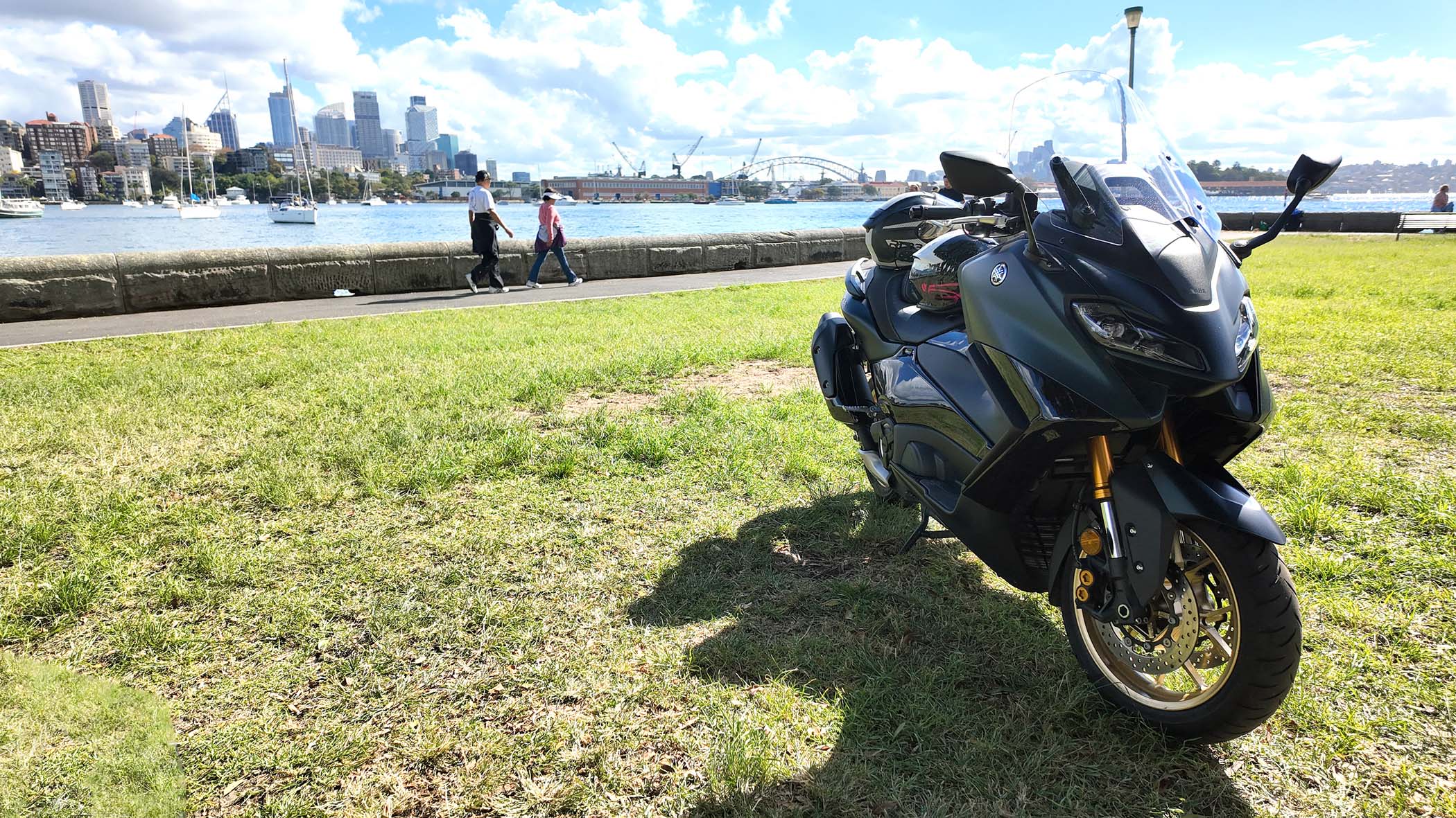 Like his MT-10SP, lane filtering was effortless, thanks to the TMAX’s agile handling and excellent visibility from the cockpit. However, the real test of its usability came on the weekend when Chris and his wife Mary decided to take the TMAX from their South Coast base into the centre of Sydney for lunch and some sightseeing. Usually a daunting task by car due to congestion, the TMAX Tech Max handled the tight streets and busy traffic with ease. Whether in Eco mode for economy, Touring mode for comfort or Sport mode for a bit more fun, the scooter’s performance was impressive. Sipping at the fuel at a rate of just 4.1Ltrs of per 100km, it was also a much more affordable day out than when they take the four-wheeled gas-guzzler. Even carrying two adults, the TMAX cruised along effortlessly and lost none of its traffic-busting agility or performance. Chris said that at one point, he needed to check to make sure he had not left Mary behind.