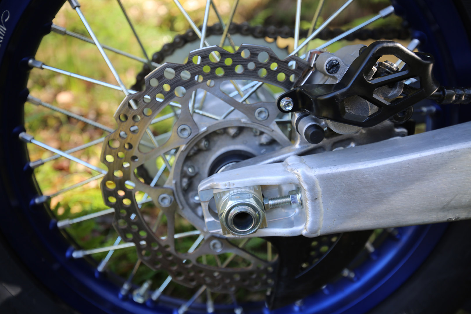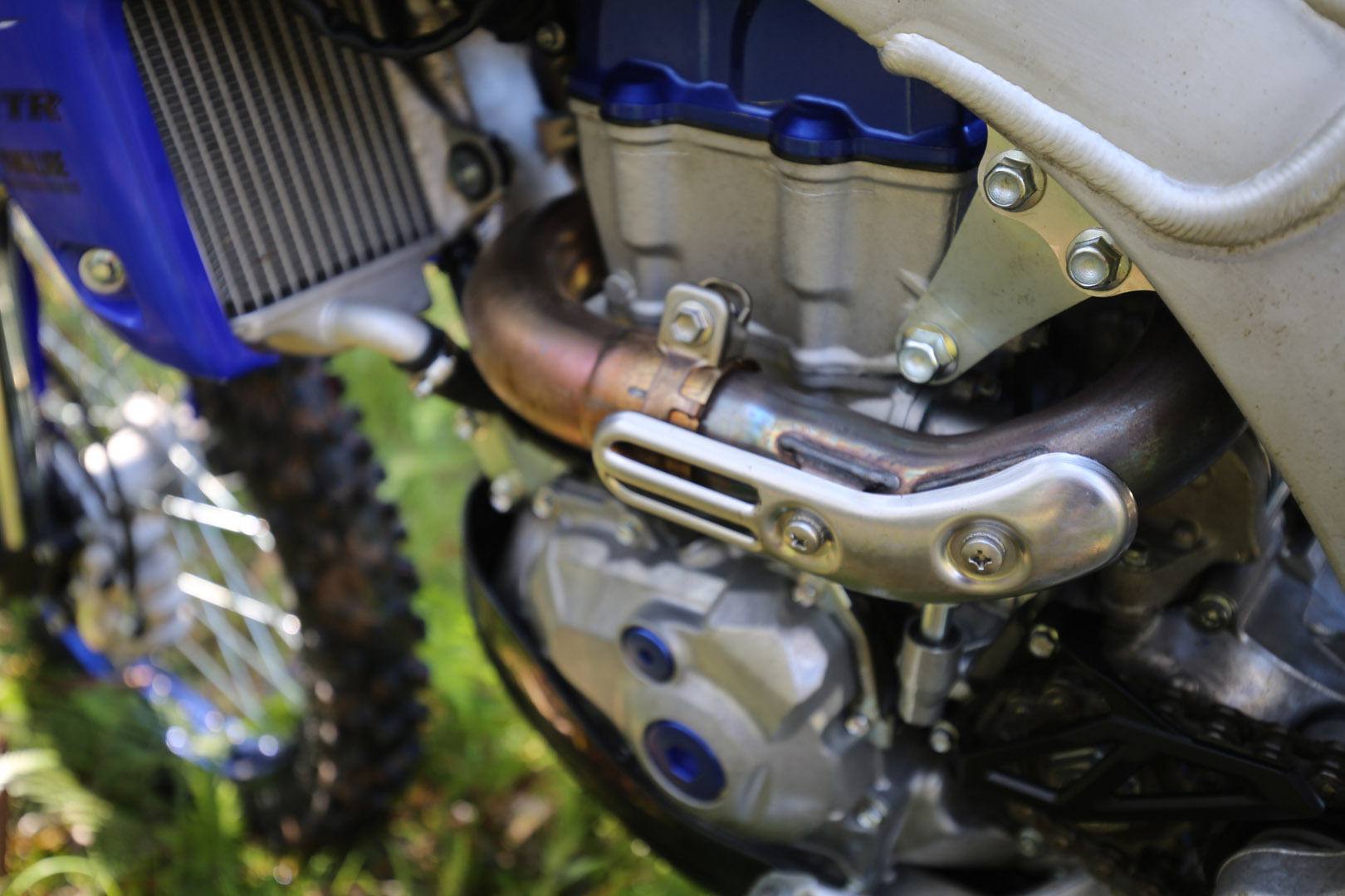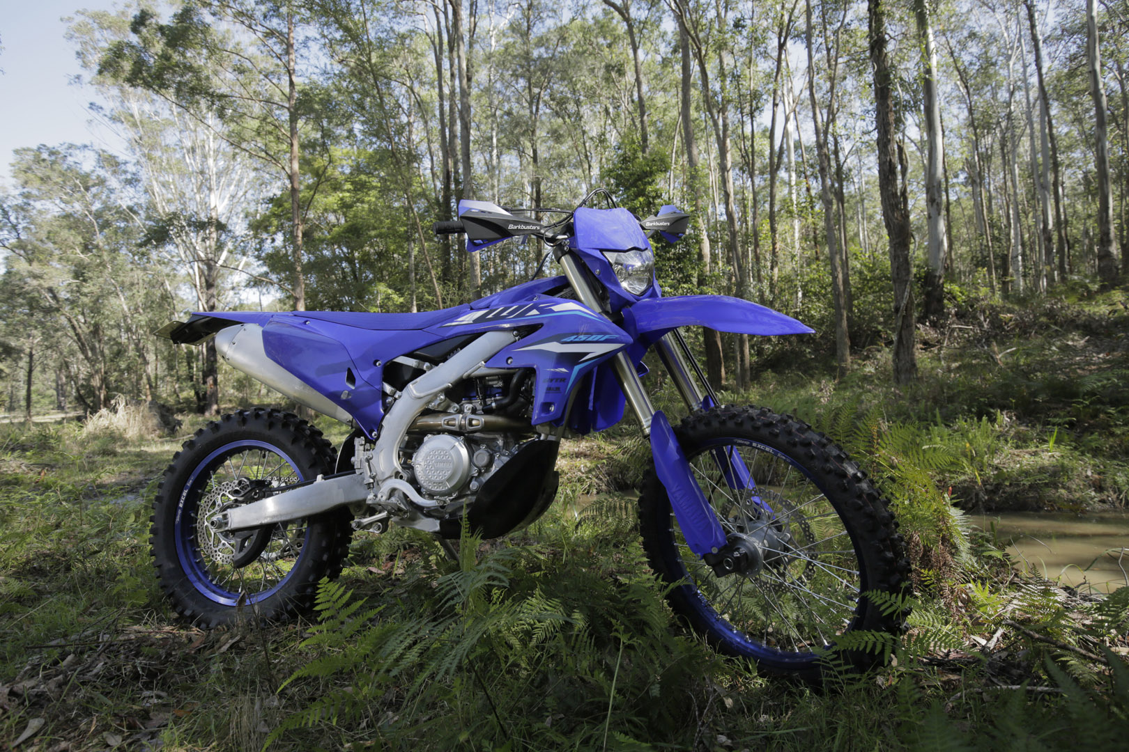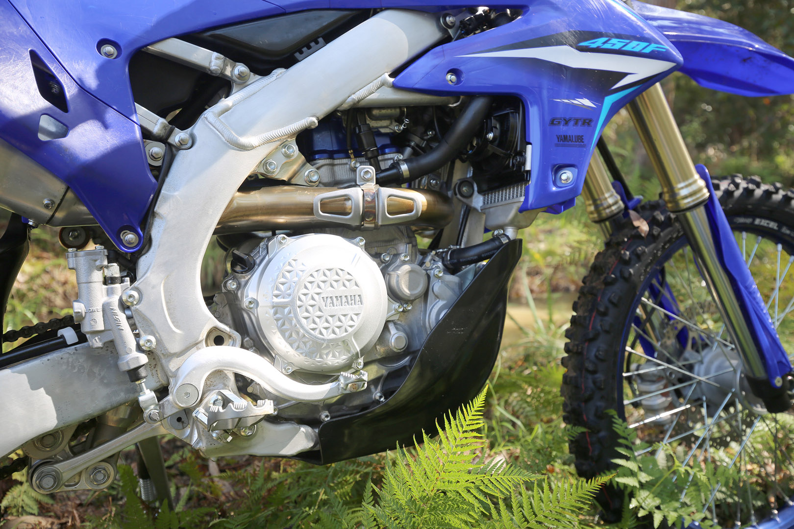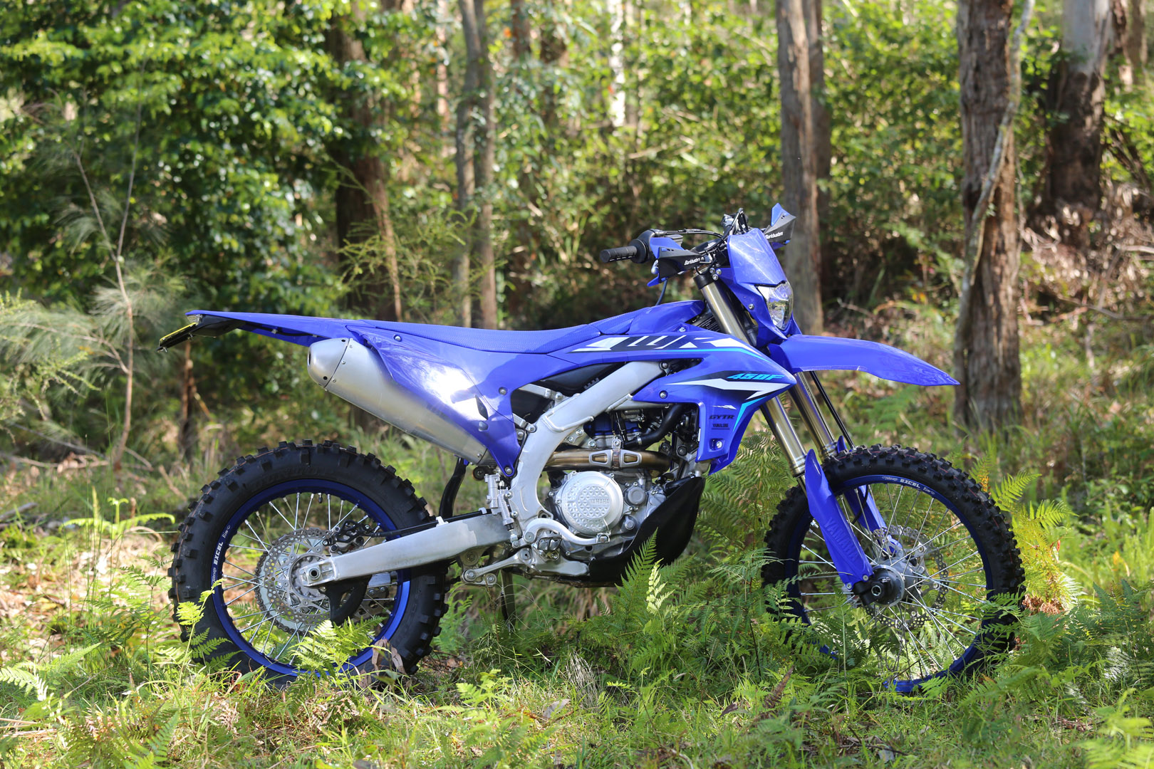 Everything else remains almost untouched. Graphics are refreshed, fork guards get a lighter blue, but under the plastics it’s still every bit the WR we know: 450cc of wide-ratio grunt, KYB suspension with 300mm travel, and a rigid beam frame that owes its DNA to the YZ450F motocrosser.