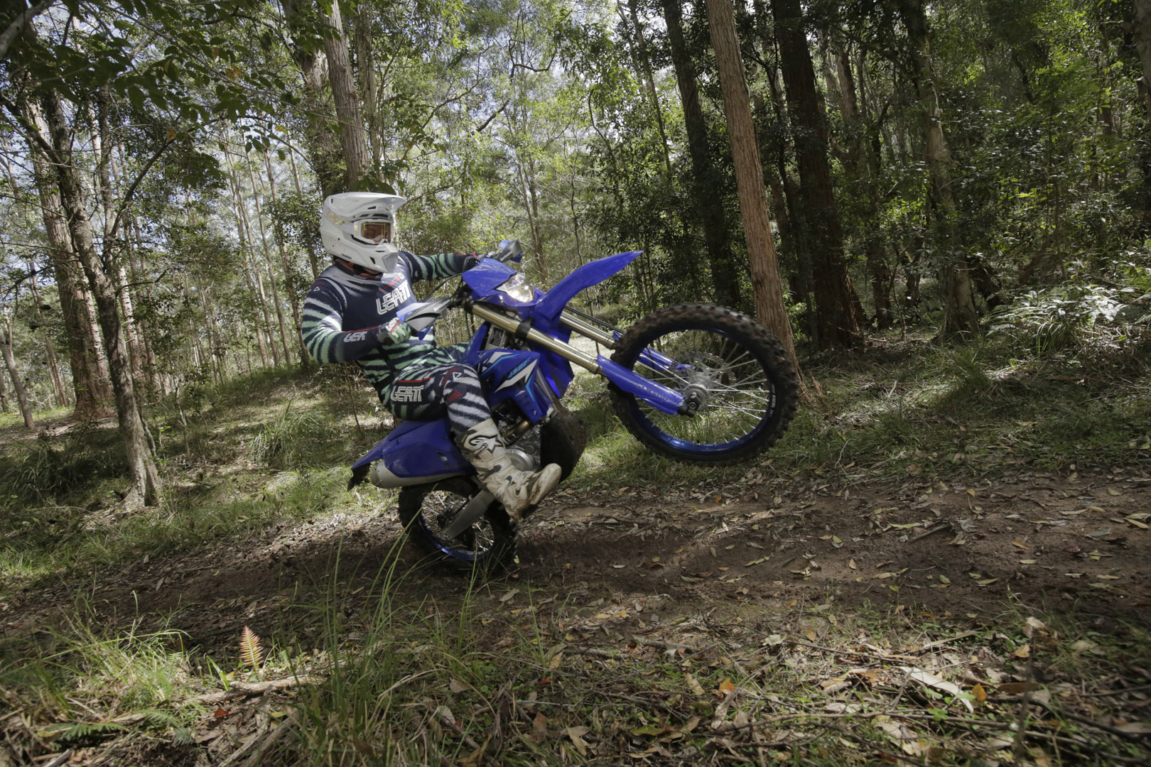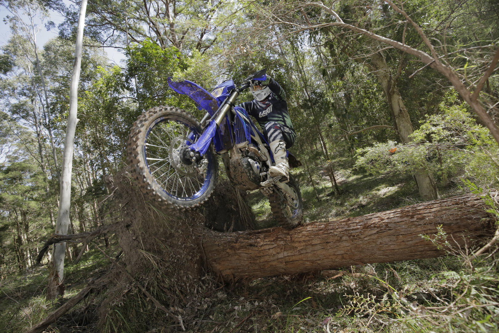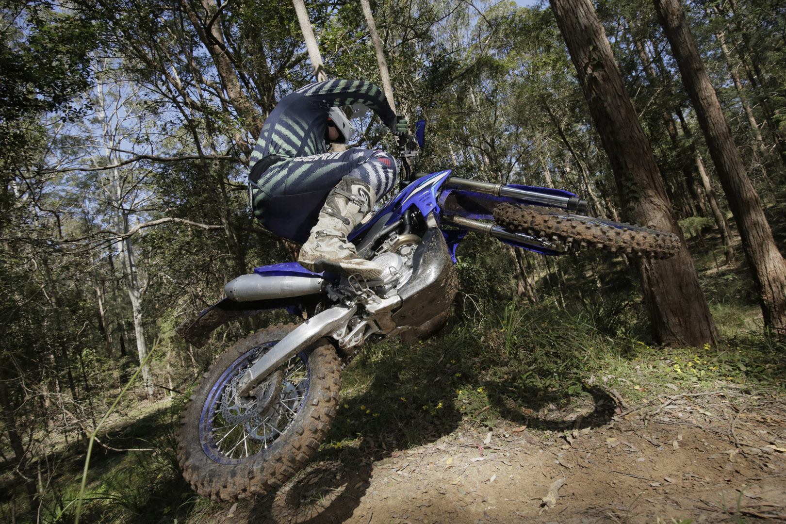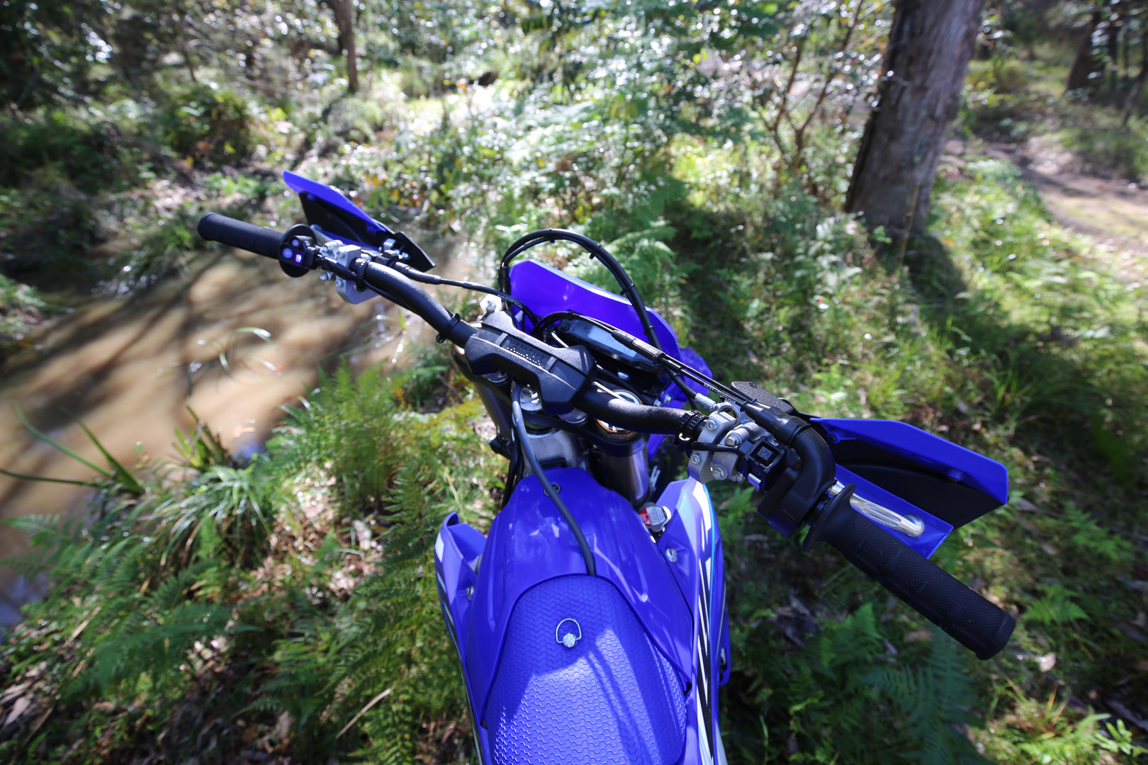 Where smaller bikes or two-strokes jump around a bit, the WR digs in. It doesn’t stall easily, nor does it demand constant clutch work, even in slower sections. It’s the bike you want when the trail opens up and you can wind the throttle on, when you want to pull a long hill in second gear without thinking, or when you’re riding big distances and need the comfort of a motor that can comfortably sit at higher speeds or can be clicked into a taller gear and lugged through the bush at the end of a ride when you’re exhausted.