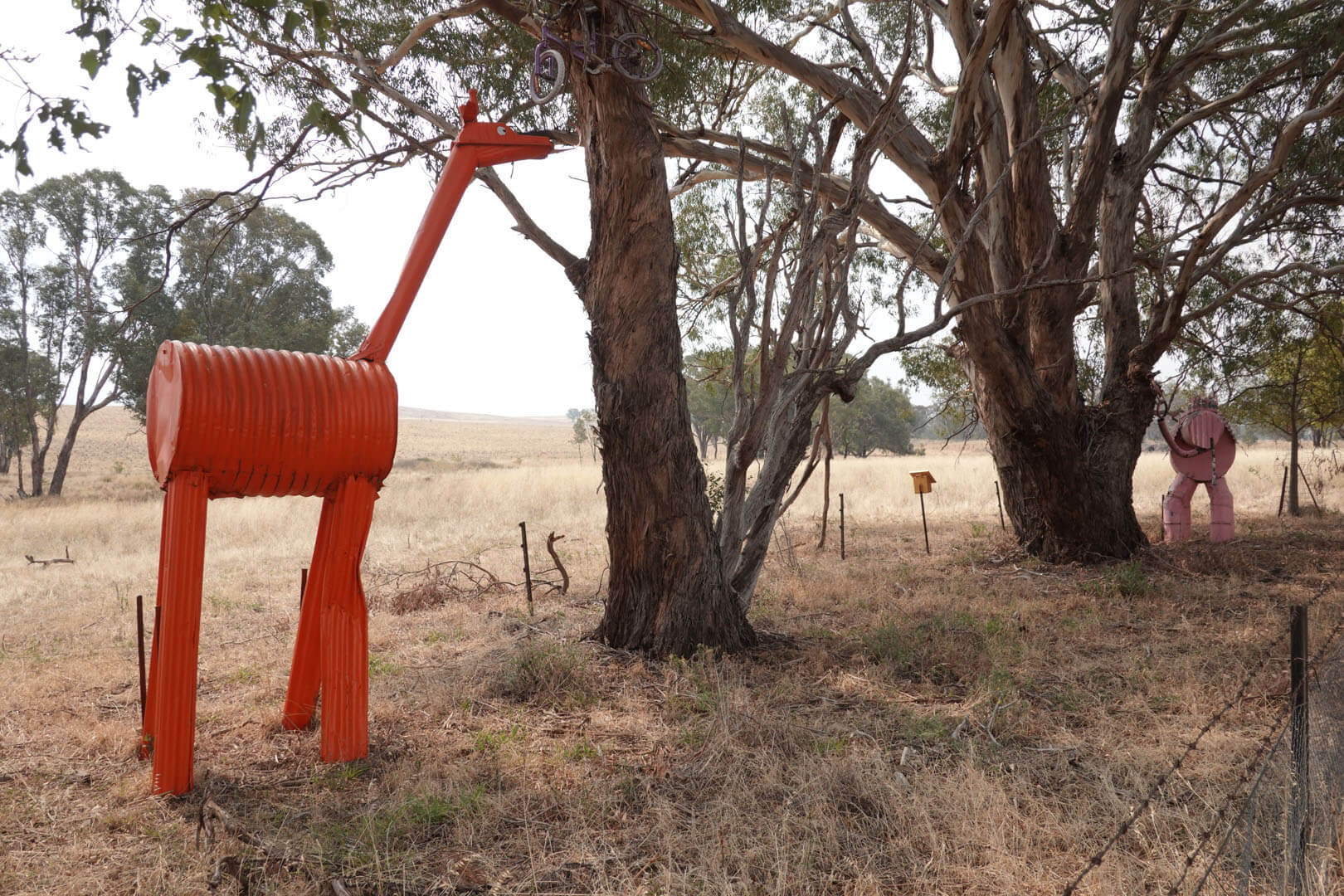 The Cumnock & District Progress Association organised welding classes through TAFE Outreach for the farmers' wives, Rentafarmhouse families and local enthusiasts that were keen to learn a new skill and create a masterpiece. Getting under way in 2009, the project ended up on a much larger scale than anticipated. It now numbers more than 100 pieces of outdoor art that can be enjoyed on the tourist trail which operates 365 days a year. It delights everyone who travels between Molong and Dubbo, from the young children and their parents travelling in school holidays to the retirees and travel bugs in their caravans all year round.