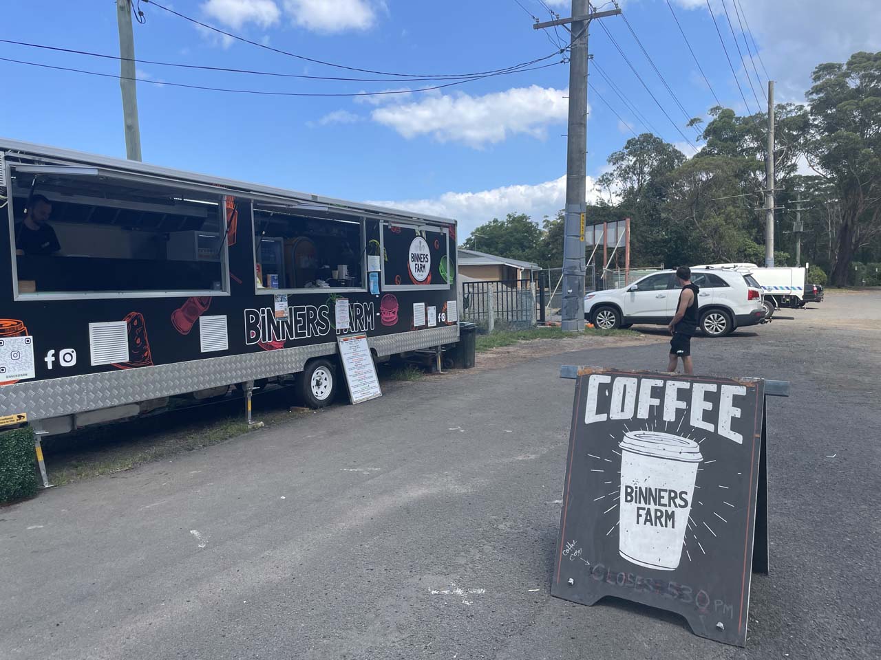 The food truck's easily accessible location - nestled between the Royal National Park, Bald Hill, and the coast road to Wollongong or beyond - makes the Binners Farm Food Truck a favourite mid-ride stop for motorcyclists, with bikes streaming into the large parking area from early morning over the weekends.