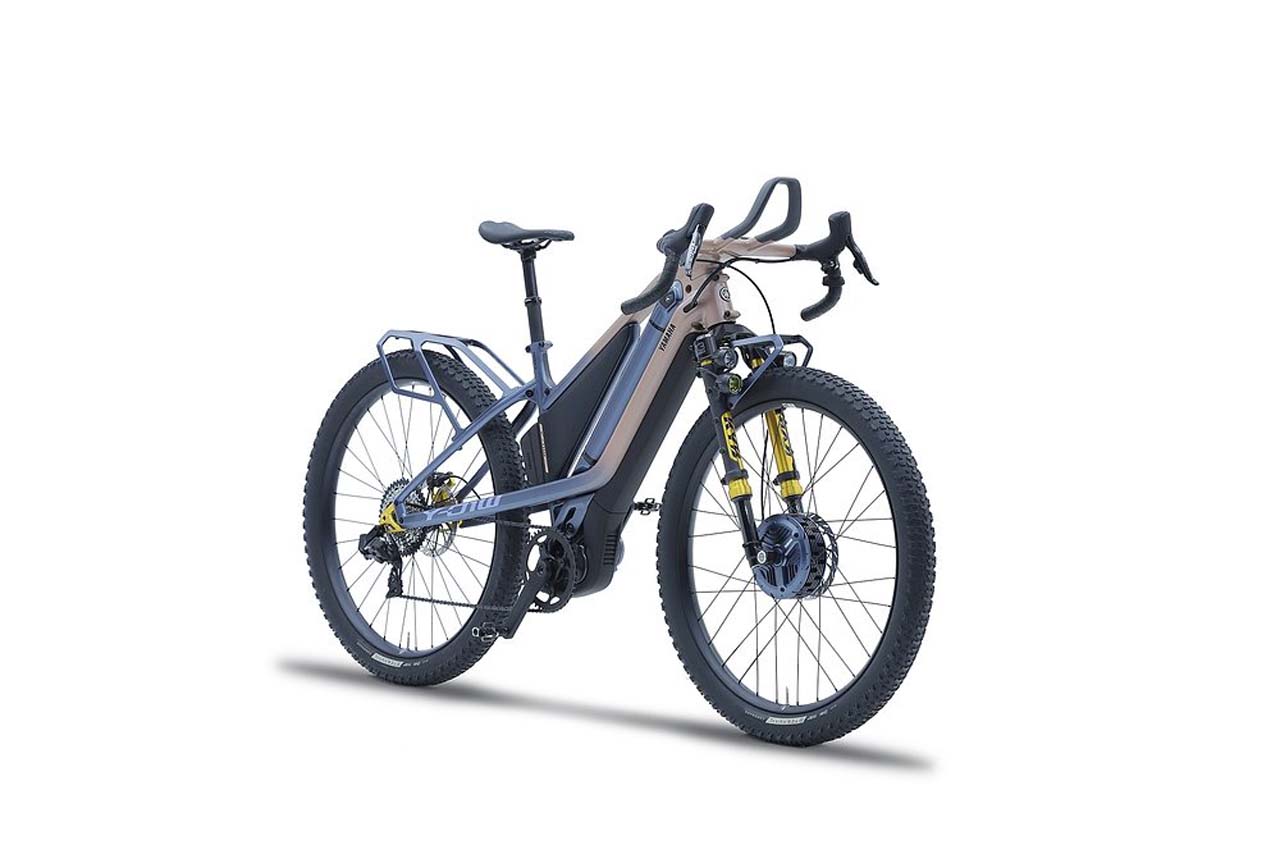 This adventure eBike combines a center-mounted electric motor and a hub motor at the front for two-wheel drive. Coordinated electronic control of the two motors, twin batteries enabling long-distance rides, wide tires, and more give the Y-01W AWD excellent off-road performance and it is a concept model that points to the many potential spheres of riding open to e-Bikes.