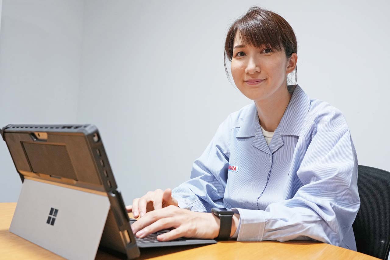 Kanoko Oishi works on an assembly line for outboard motor parts, and through collaborating with other women leaders in her workspace, she has been striving to improve their environment through ergonomics that quantify the loads placed on the body. “After two years of working on improvements, we’ve been able to really expand the range of duties that women and older operators can handle,” she says.