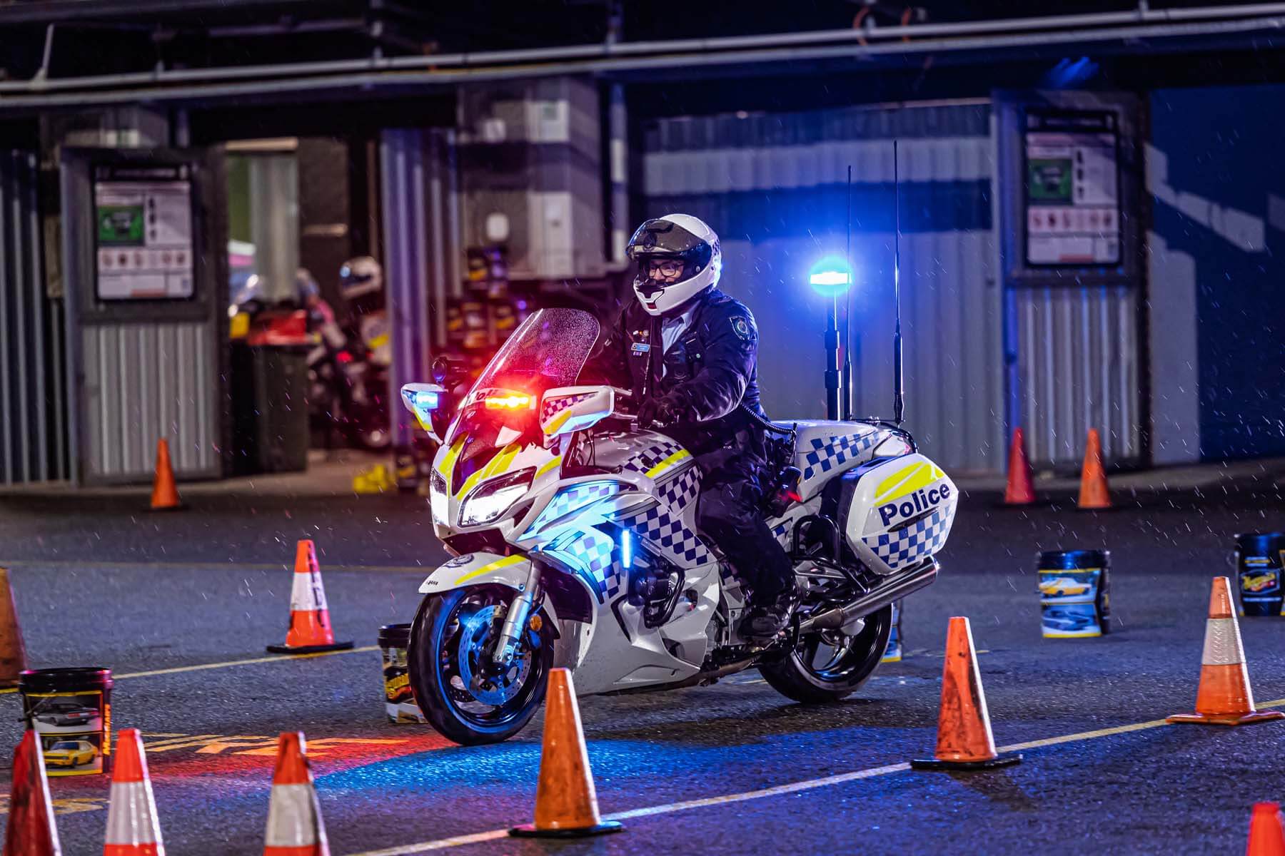 This year, Yamaha Motor Australia—via its supported provider MotoSchool, which holds regular on-track coaching days at Sydney Motorsport Park—took part in the event for the first time. A new motorcycle obstacle course and slalom challenge saw the NSW Highway Patrol’s best riders on their police-spec Yamaha FJR1300s go head-to-head with MotoSchool coaches aboard a variety of Yamaha motorcycles and scooters. The goal was simple: for the lead-out rider to open a gap on the pursuing Highway Patrol officer, with flashing blue and red lights adding to the spectacle. The extremely tight and technical course demanded precision, balance, and control, and the competition was fierce throughout the evening.