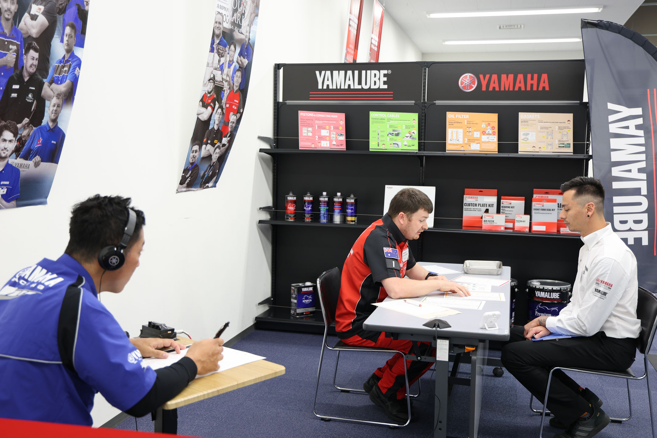 After the hands-on diagnostic and repair phase, competitors switched into customer-service mode, explaining the work undertaken to Yamaha Service staff member acting as a customer. Lincoln explained the issues found and the condition of the bike in the simulated handover which was scored by judges who watched and listened on.