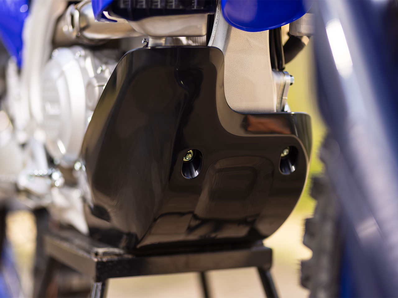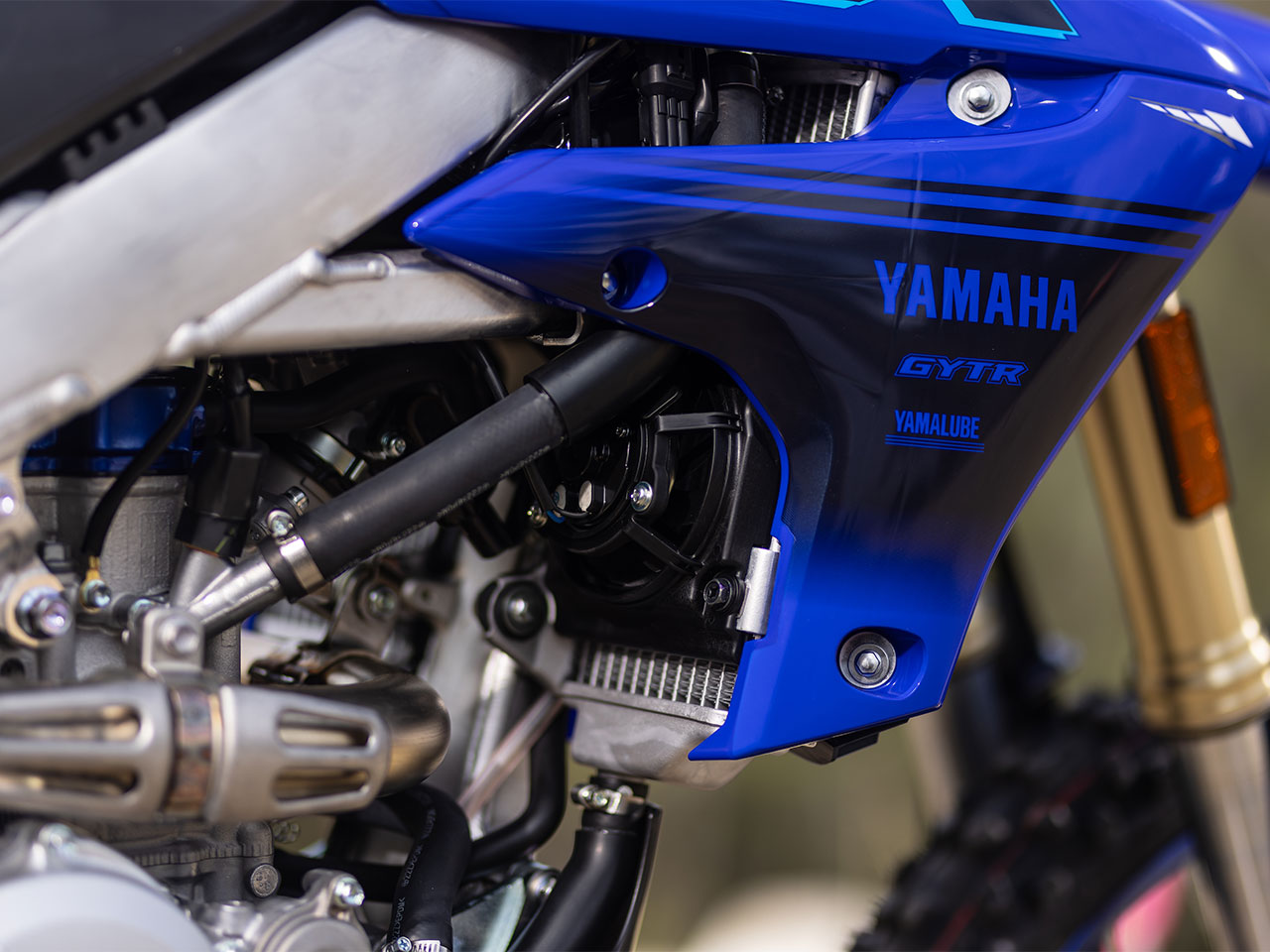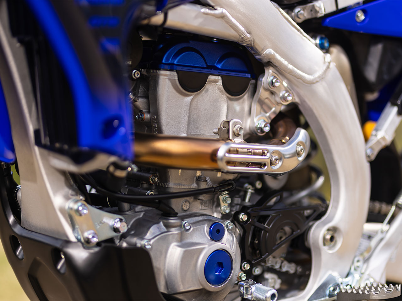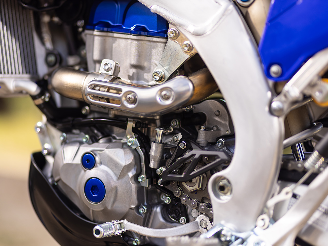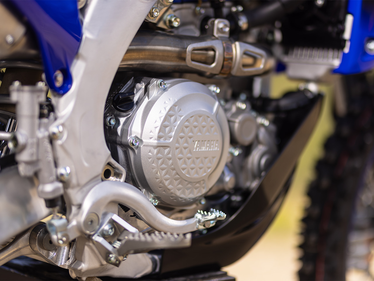 This model’s liquid-cooled, four-stroke, electric start engine features a powerplant straight from the MXGP-dominant YZ250F that produces strong mid to top-end power while retaining class-leading low-end torque.