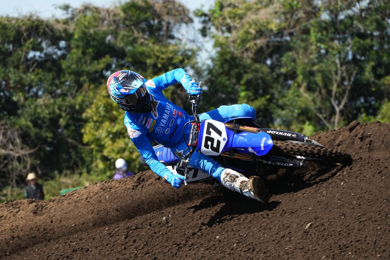 Jay Wilson made his debut in the IA1 (450cc) class a memorable one at the opening round of the 2023 Japanese Motocross Championship taking his YZ450F to a perfect three wins from three starts to kick off his campaign in stunning fashion.Wilson, the 2022 250cc Japanese Champion, made the move to the 450 class for 2023 with the newly formed Yamaha Factory Innovation Team and has adapted well to the new YZ450F. Despite a mishap in the early free practice session, Wilson went on to win his qualifying race and then pieced together three impressive motos to take the round one victory.