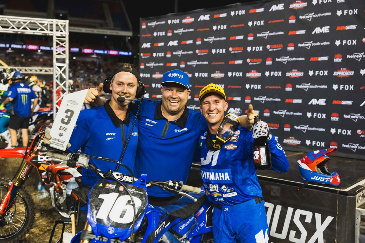 Yamalube Yamaha Racing’s Kaleb Barham made his first podium appearance at a national supercross race with a third-place finish in the SX2 class at the Newcastle round of the championship, over the weekend.