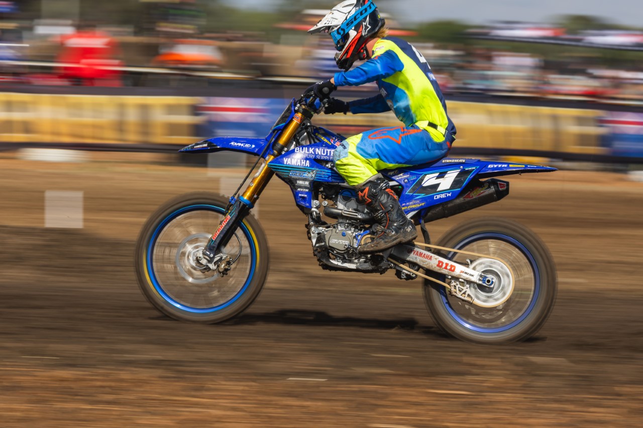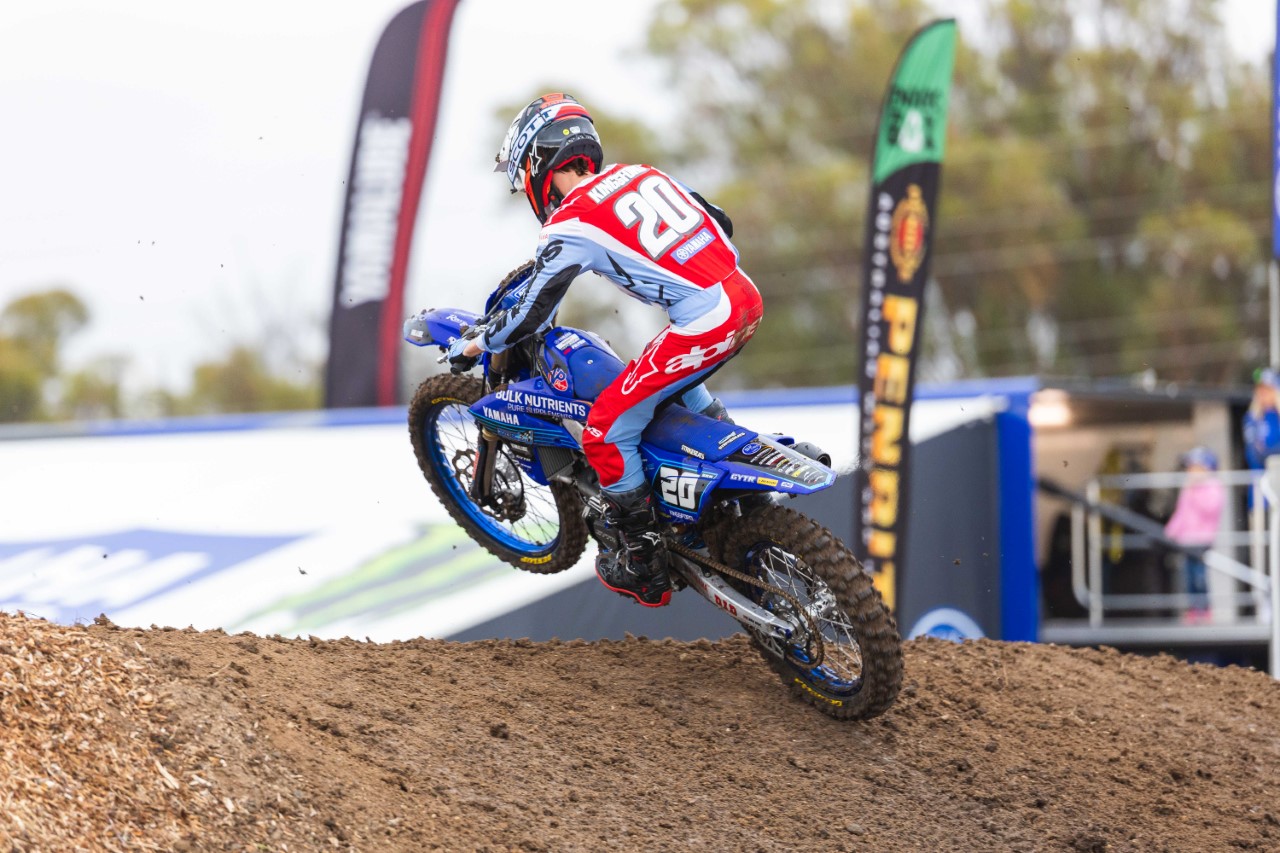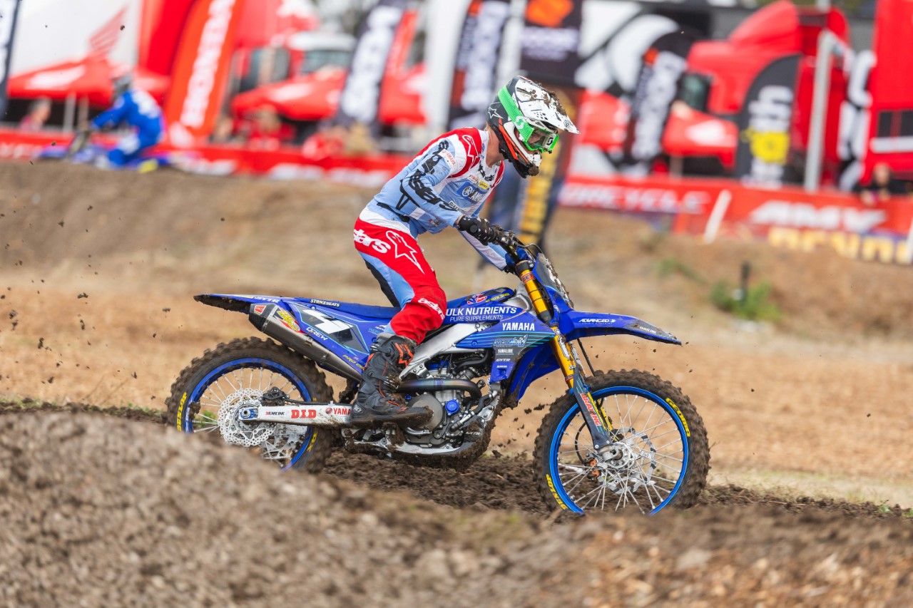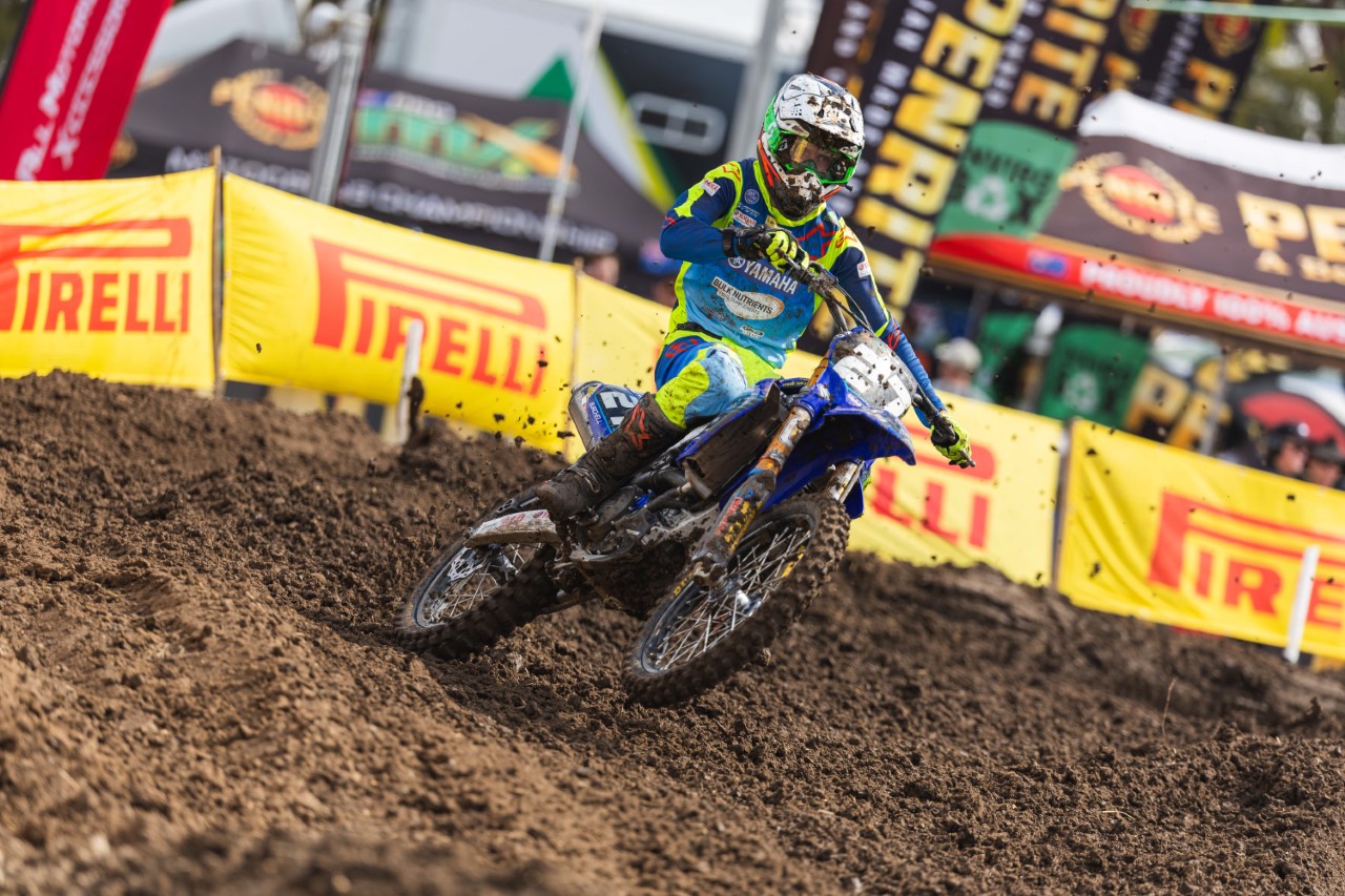 Behind Hantis was a whole gaggle of WBR Yamaha riders, with Kayd Kingsford in fourth, missing the podium by one point, Kobe Drew in sixth and Seth Burchell in seventh. Kingsford will be disappointed with his day as he was leading race one before he crashed but then bravely wrestled his way back to fifth and then in moto two, he was locked in battle for the race win, only to let it slip on the last lap.