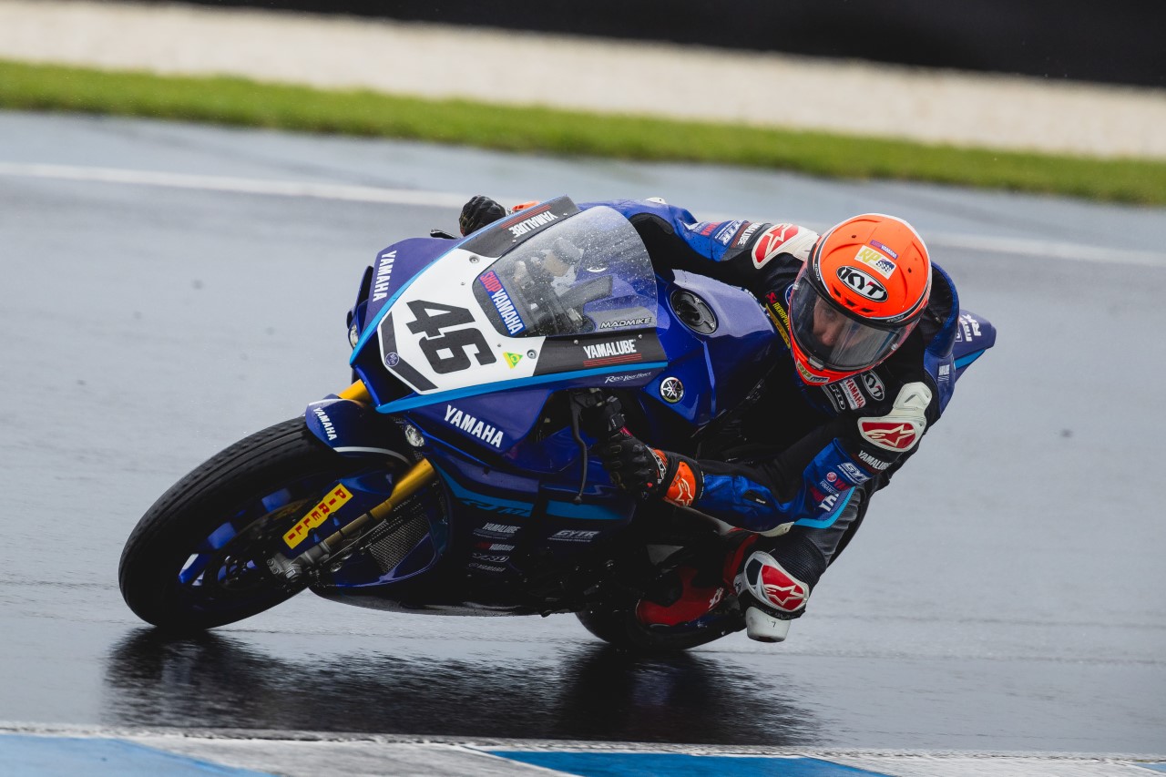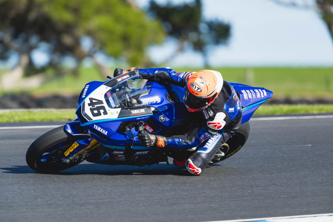 In a condensed two day format that kept everyone busy, conditions went from sunny, cold and windy to wet, cold and windy across the weekend and as a result, the Superbike division had one dry and one wet race and the YRT riders a heap of work to do with two rounds remaining in the ASBK Championship. Mike Jones finished fifth for the round and was disappointed he couldn’t make the most of his riding over the weekend. Jones qualified in fifth and with the top 10 all within a second, the racing was set to be tight in the opening 11 lap race.