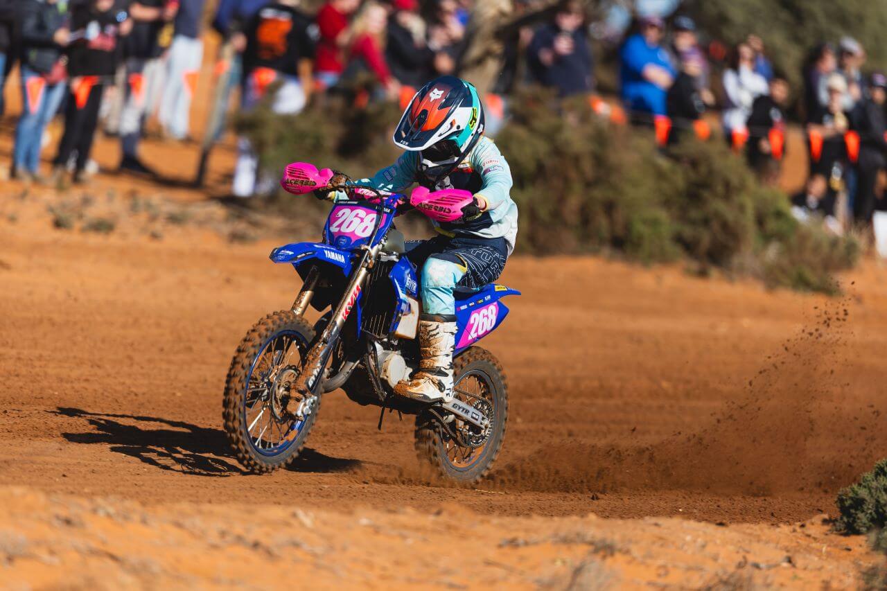 Is there nothing that Stella Harding can’t do? When she isn’t giving it to the boys in state and national motocross races all over the country, she is now giving the off-road brigade something to think about after winning the Girls Under 12 class, but more impressively, being the sixth junior rider across the line.