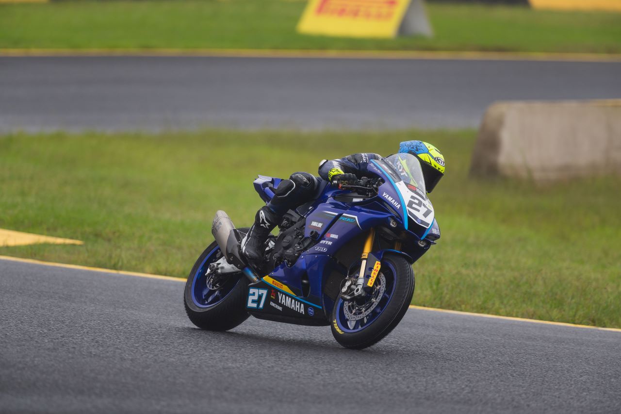 With dark skies and a bleak weather forecast, riders were expecting a wet track and slippery conditions but despite rain in the region and rain throughout the day on Saturday, race conditions were dry for both legs of the Superbike class.Jones started off the weekend well, putting his YZF- R1M on pole position in a crazy qualifying session. Riders exploded onto the track to get a lap in as light mist began to fall from the sky late on Friday night. Jones lodged a good time and returned to the garage with every intention of heading back out if the weather held off.