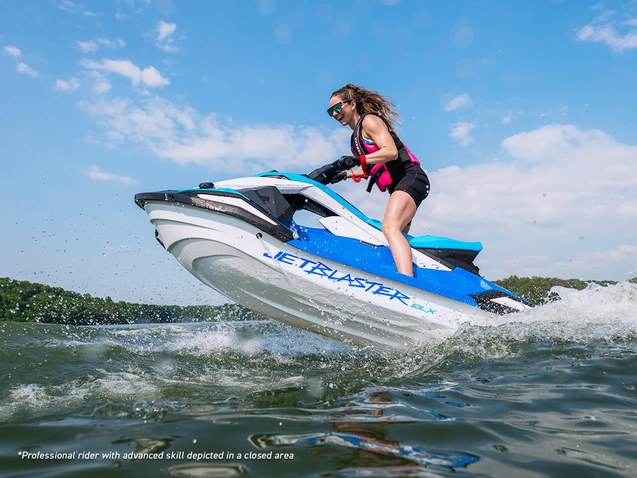 And with features like Yamaha’s exclusive RiDE dual throttle controls, a spacious three-seat configuration, additional bow storage, reboarding step and tow hook, the JetBlaster DLX is ready for your next water adventure.
