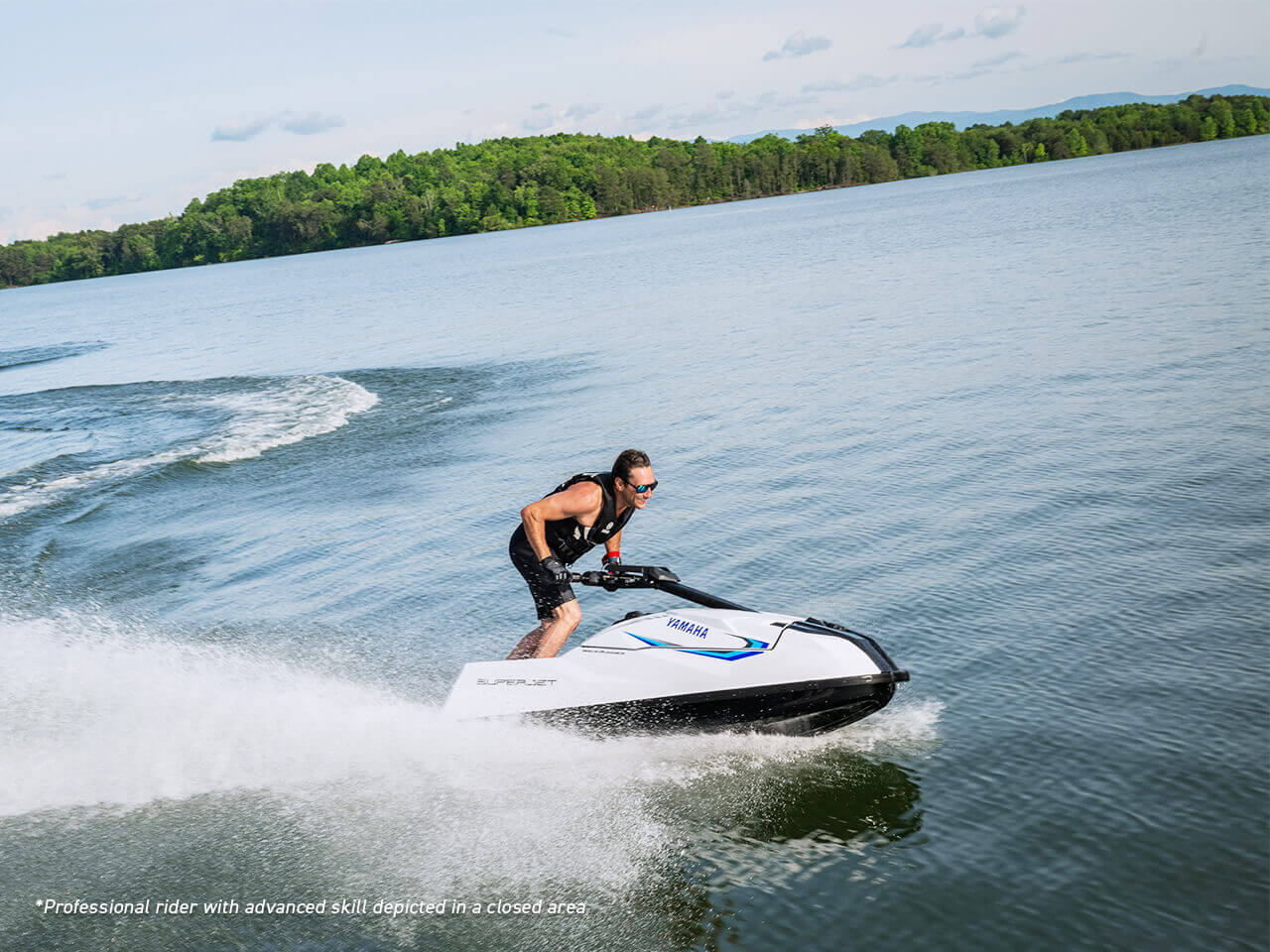 Inspiring a new generation of stand-up riding enthusiasts, the latest edition of the legendary Yamaha SuperJet comes with a pumping 3-cylinder, 4-stroke engine combined with a sleek and ultra-light hull - delivering blistering acceleration in the straights, and unbelievable agility, manoeuvrability and control, allowing you to carve through corners like never before.